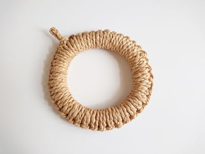 ワラを一本一本編んで作っているので、重い鍋などを置いても安定感があります。無駄を省いたシンプルなデザインは、どんな食卓にもマッチ。ループが付いているため、吊り下げて収納することが出来ます。少し小さめの鍋を置くのにぴったりのサイズ感です。