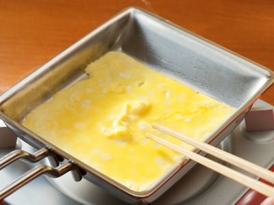 卵焼きは、均一な温度で熱を通すことにより、きれいにおいしく仕上がります。厚みがあり、ふんわりとした卵焼きを焼くためには、「卵焼き鍋」「卵焼き器」とも呼ばれる卵焼き用フライパンを使うのが一番適しています。