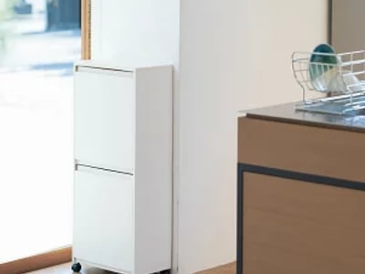 コンパクトながらも2つのゴミ箱が収納できるつくりになっているので、ゴミの分別も可能です。ナチュラルな2種類のカラーがさまざまなテイストのインテリアになじみます。